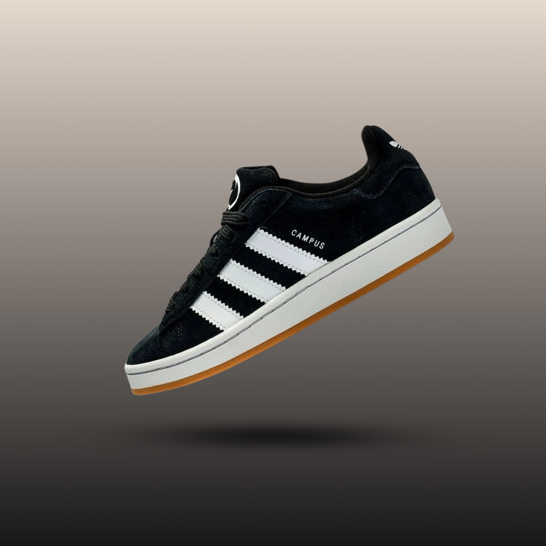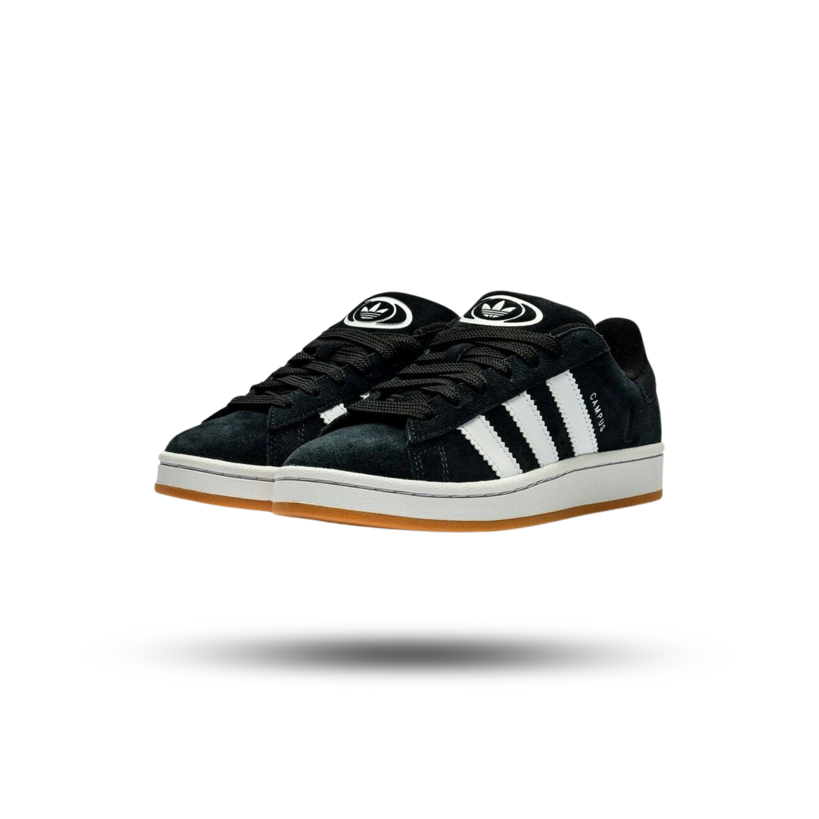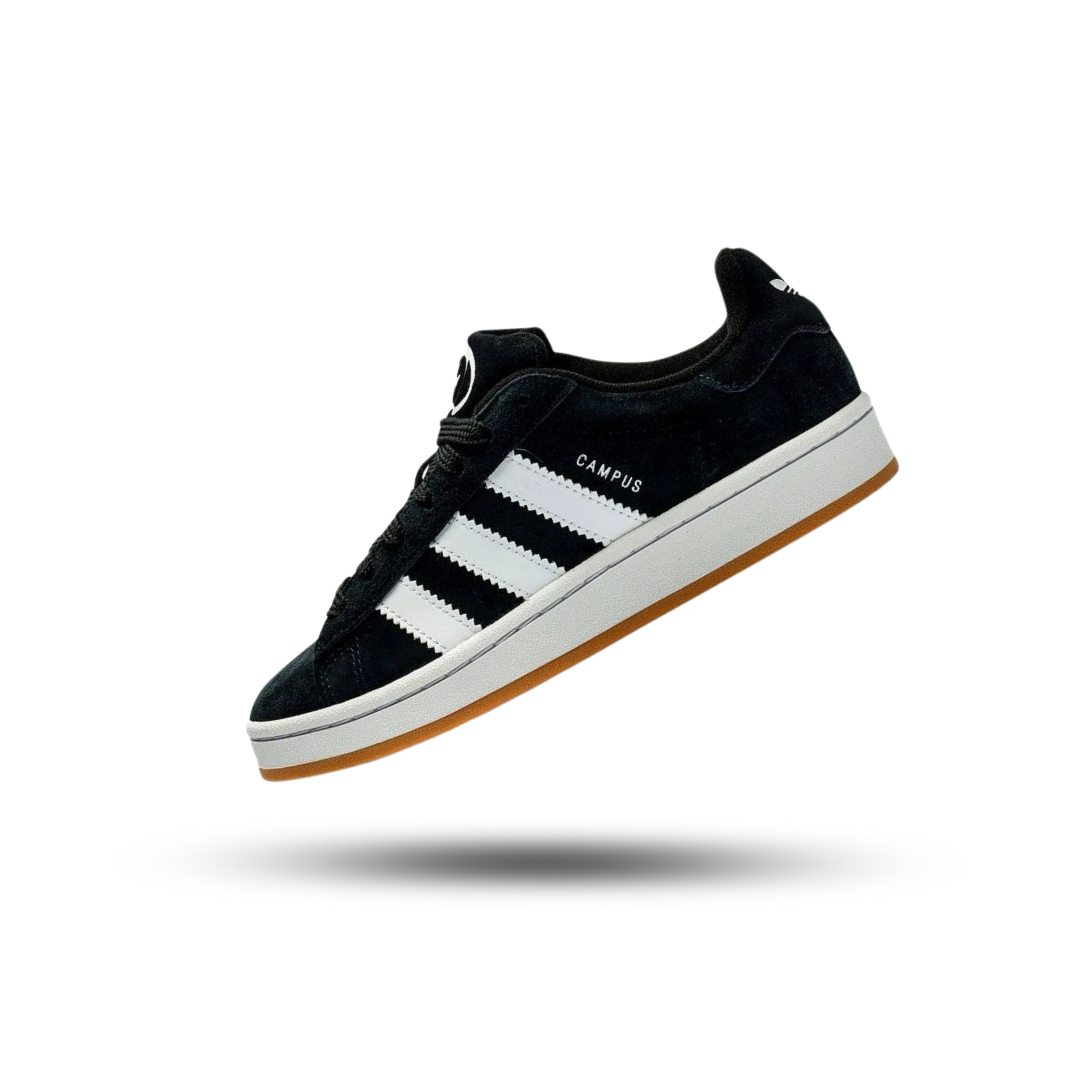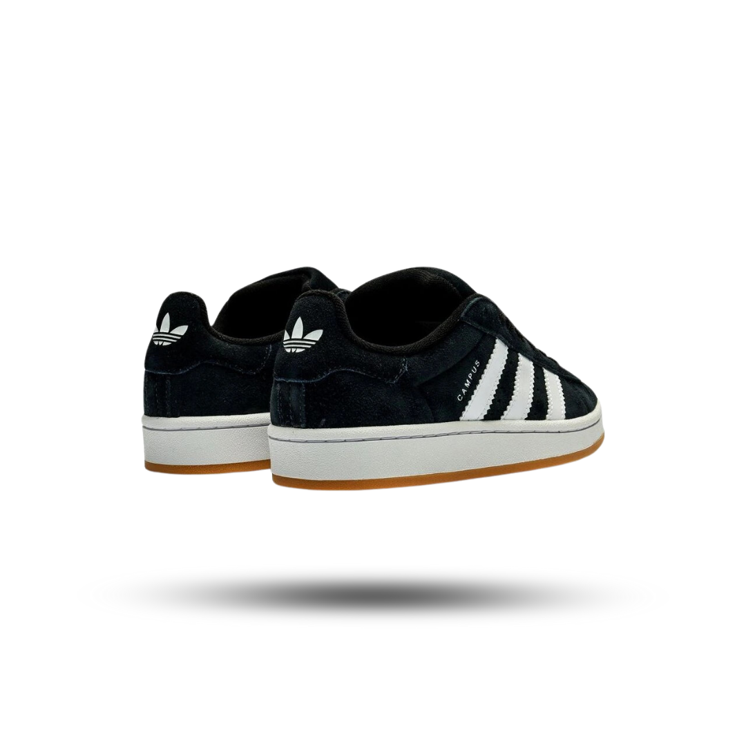 adidas Campus 00s Black White Gum (Kids) mají nízký tvar a jsou celé z černého hladkého semiše. Na bocích jsou bílé zoubkované pruhy a nechybí logo na jazyku i patě. Podrážka je celá z gumy v karamelovém odstínu a střední část je bílá.